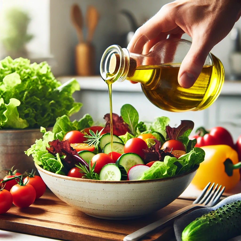 - 신선한 샐러드에 드레싱으로 뿌리기